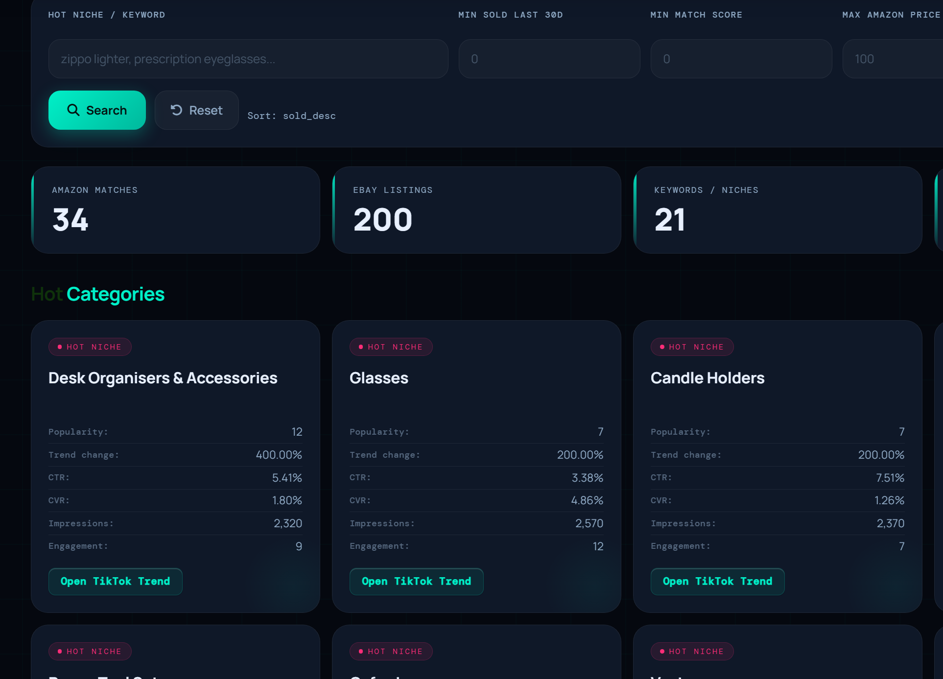 Powered by TikTok trend signals, this module shows you what's already selling on eBay inside the hottest niches — before your competitors even notice the wave.