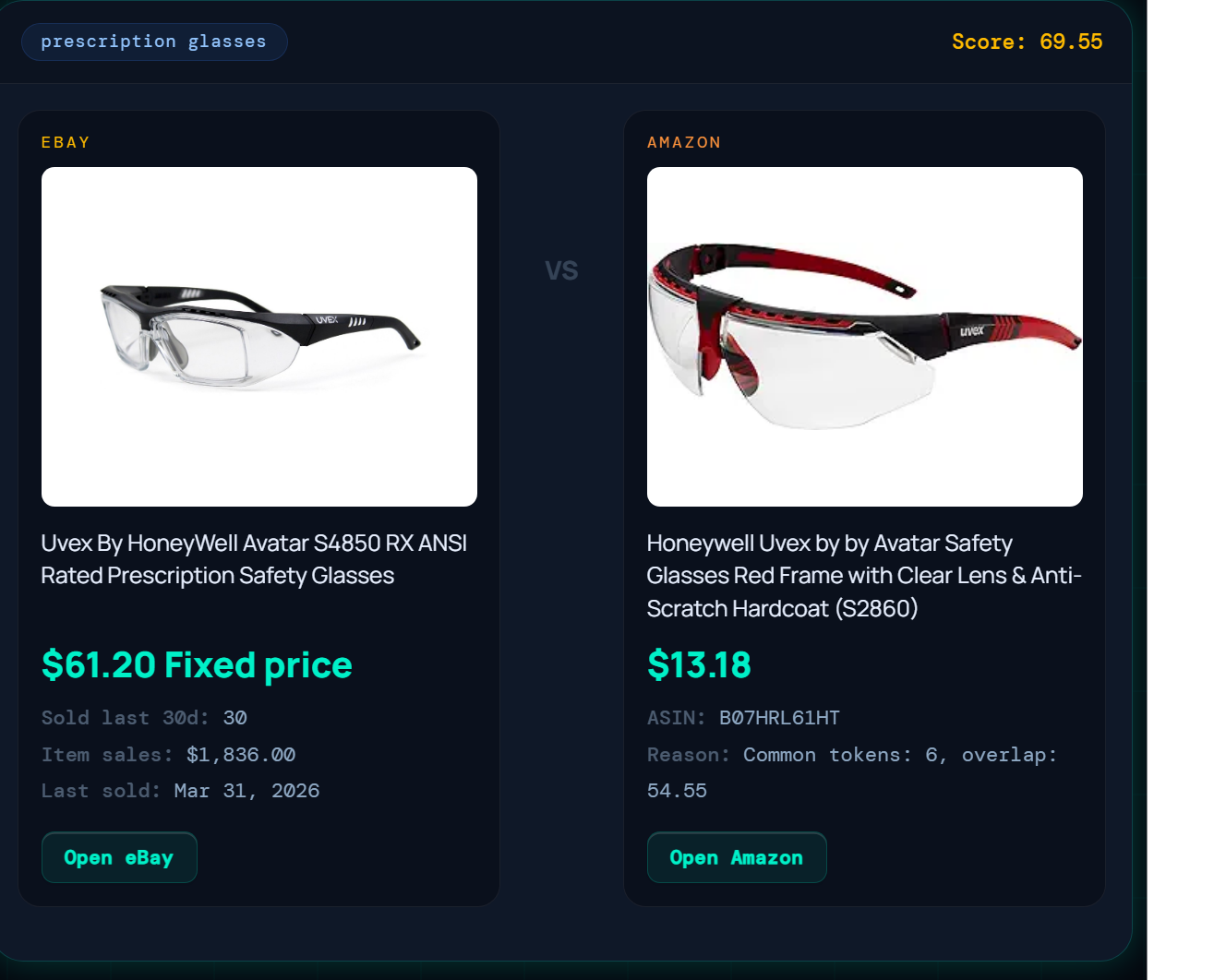 Download Chrome Extension — FreeEvery hot eBay product automatically matched to its Amazon equivalent. See the profit spread, sold history, match score, and supplier data — side by side in one card.